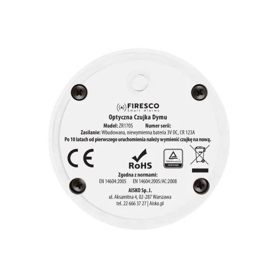 - 3-letnia gwarancja obejmująca czujkę i baterię