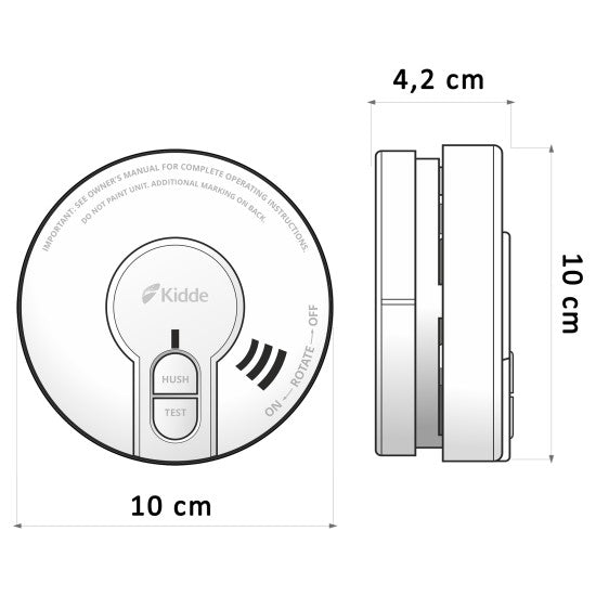 Posiada przycisk TEST służący od kontroli i obsługi czujki oraz przycisk HUSH™ umożliwiający wyciszenie przypadkowo uruchomionego alarmu (np. w trakcie gotowania lub smażenia).