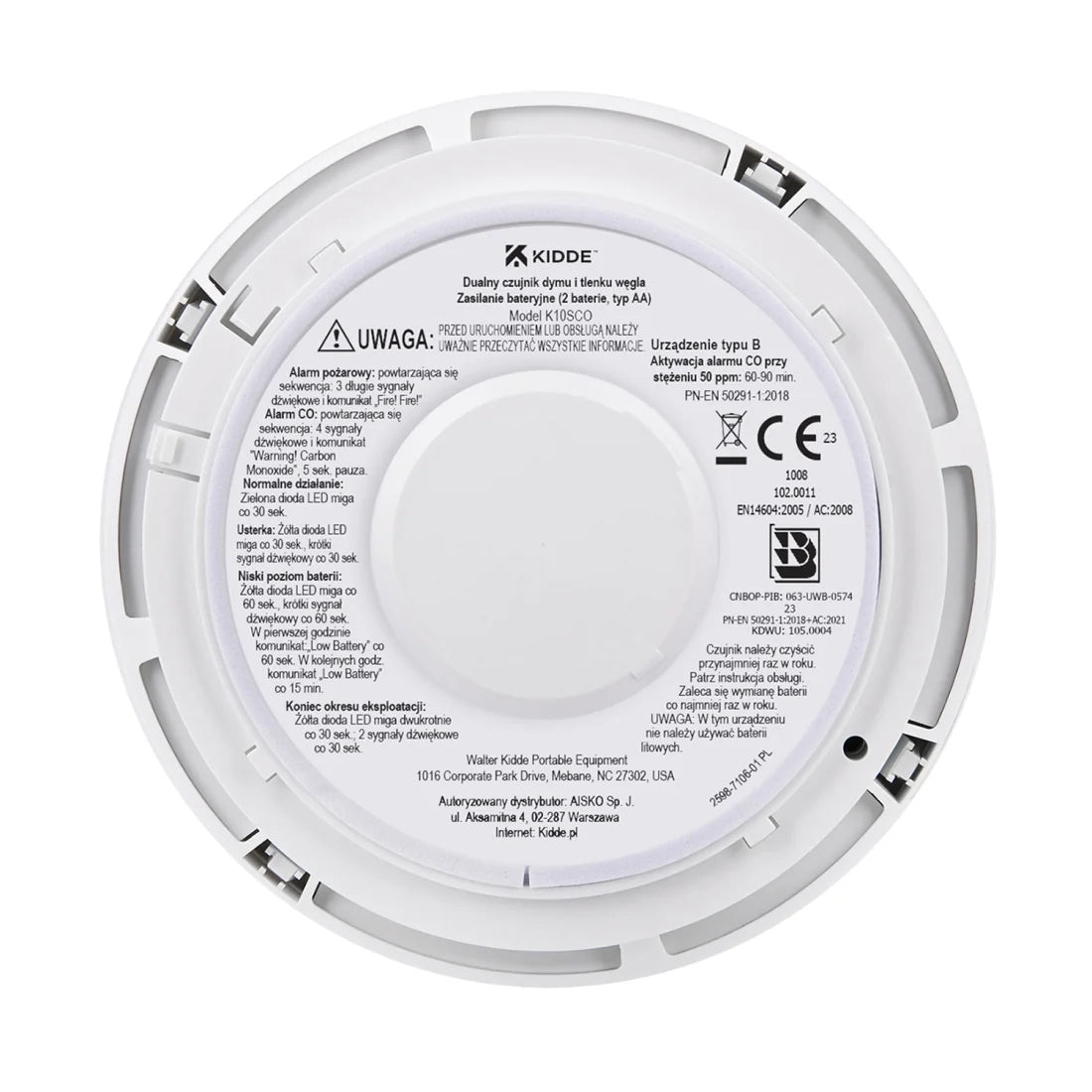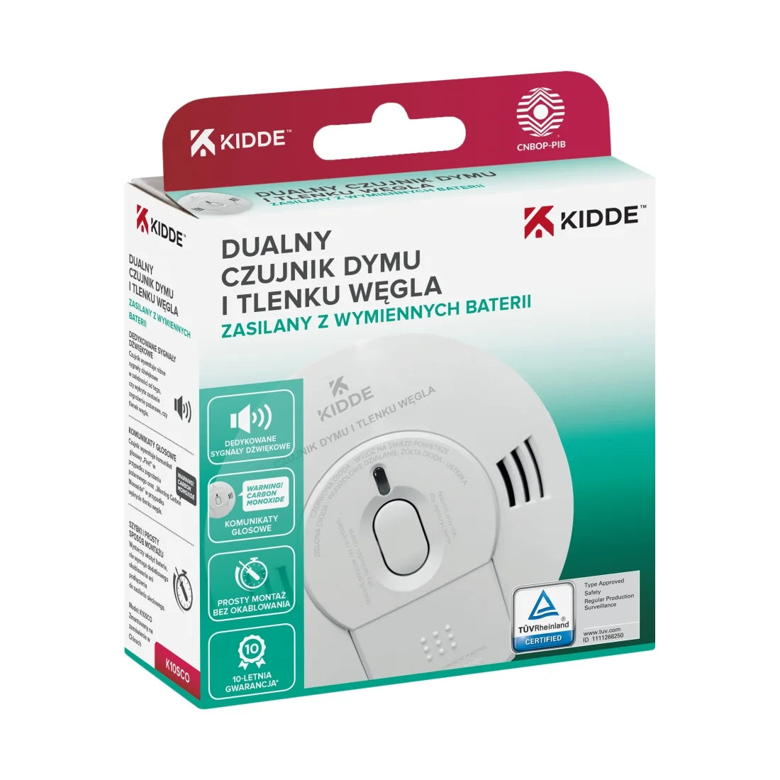 K10SCO to dualny czujnik dymu i tlenku węgla wyposażony w alarm głosowy oraz dwa niezależne sensory. Optyczny odpowiada za wykrywanie alarmów pożarowych, natomiast elektrochemiczny za detekcję tlenku węgla (CO).